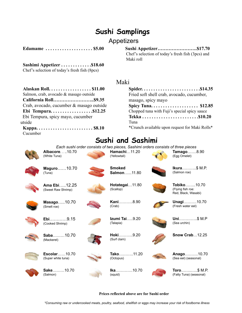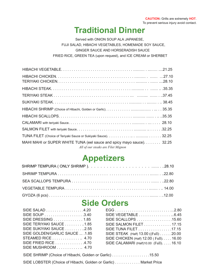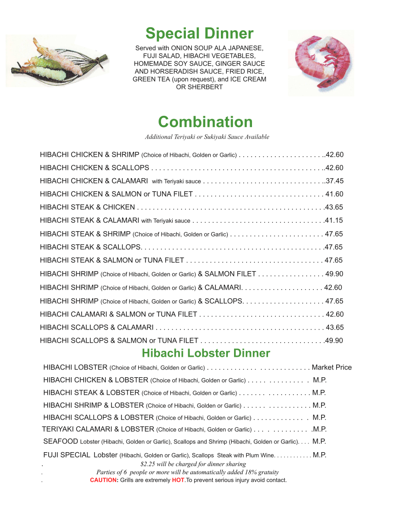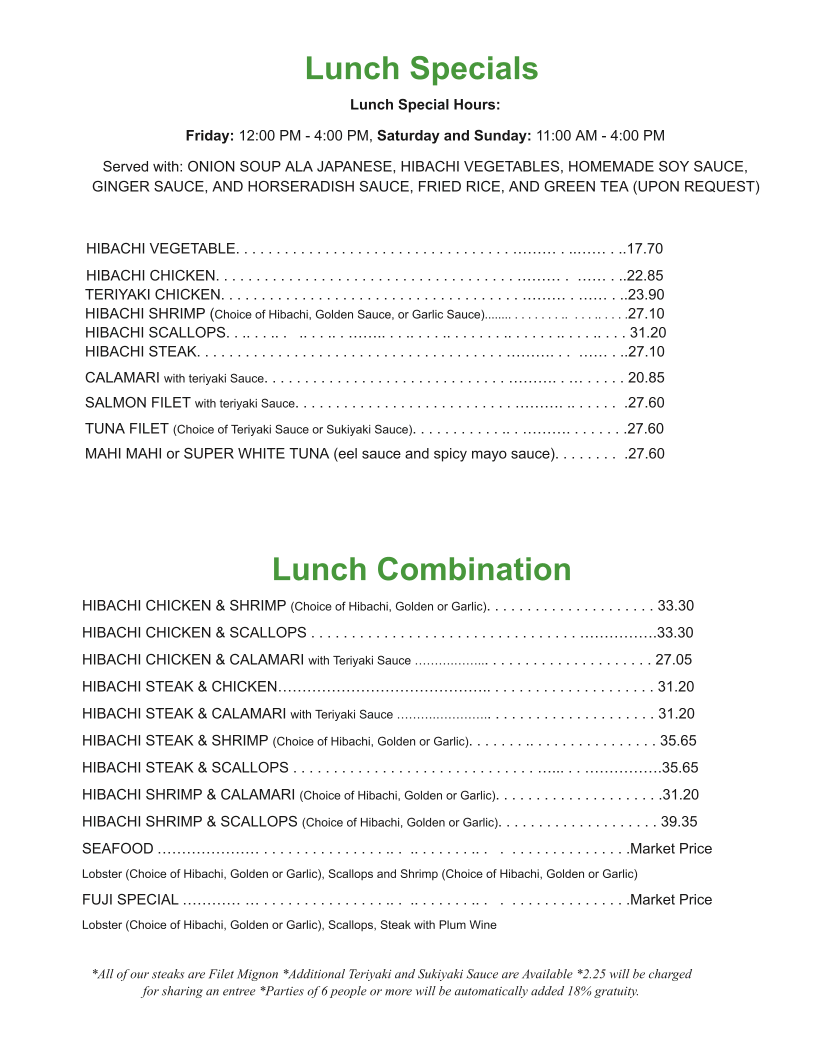 Fuji Japanese Steak House Menu