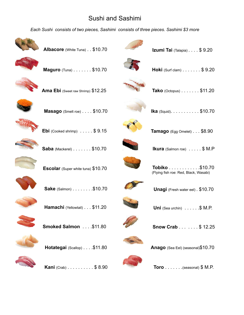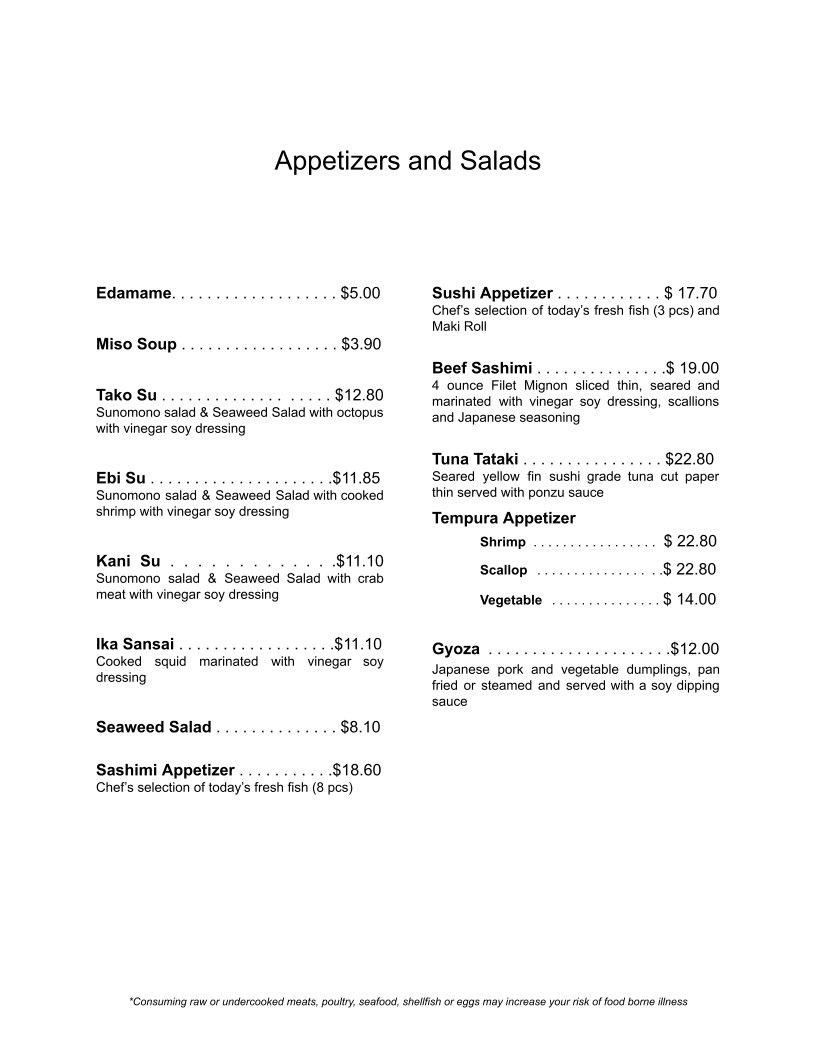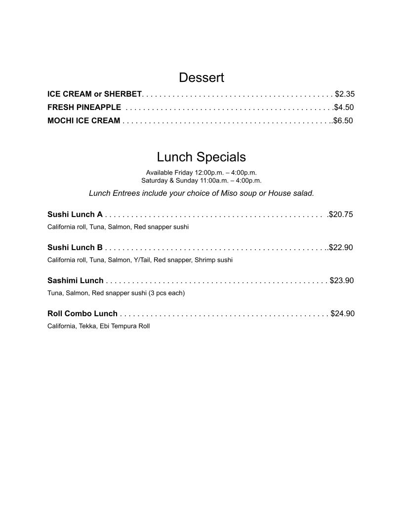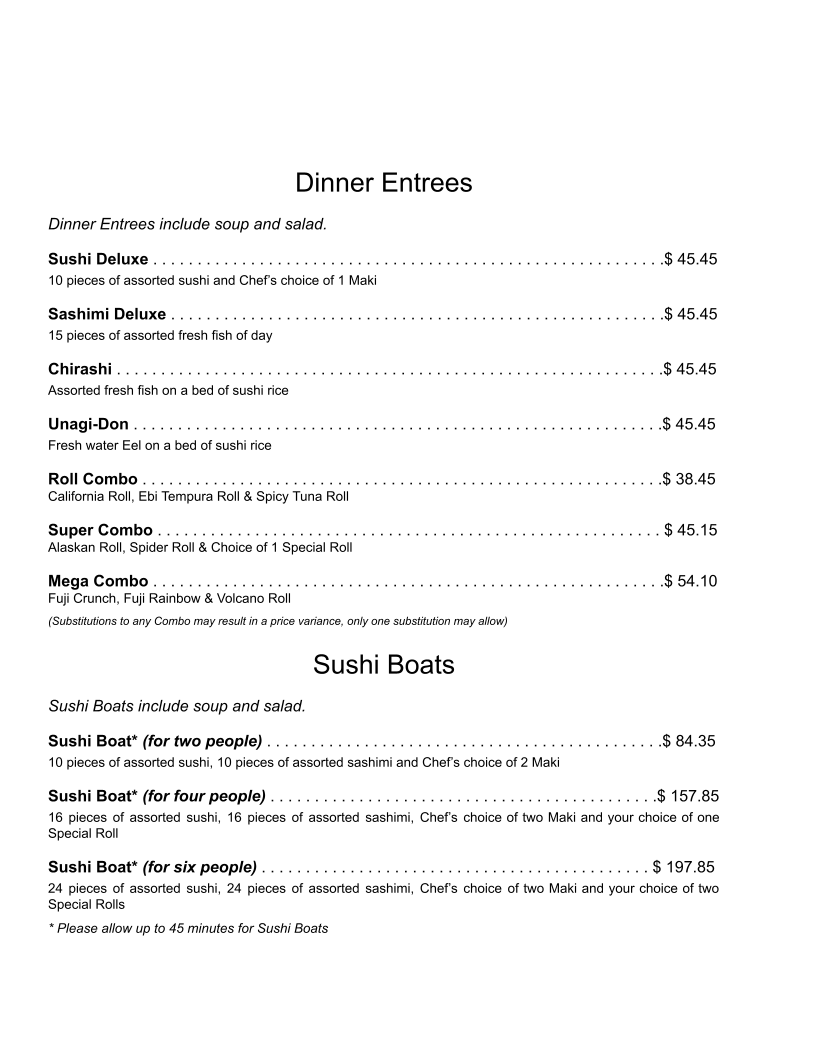 Fuji Japanese Steak House Menu